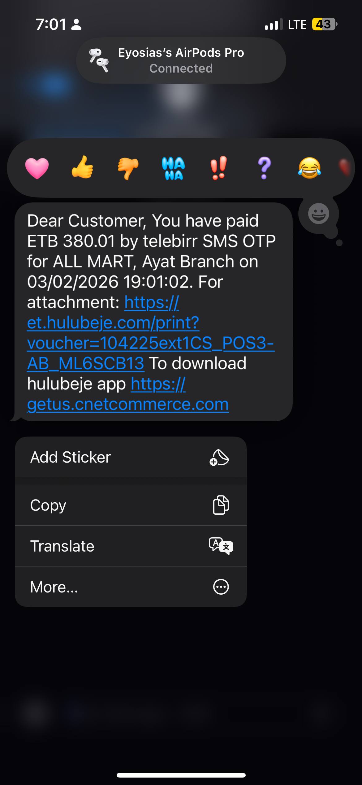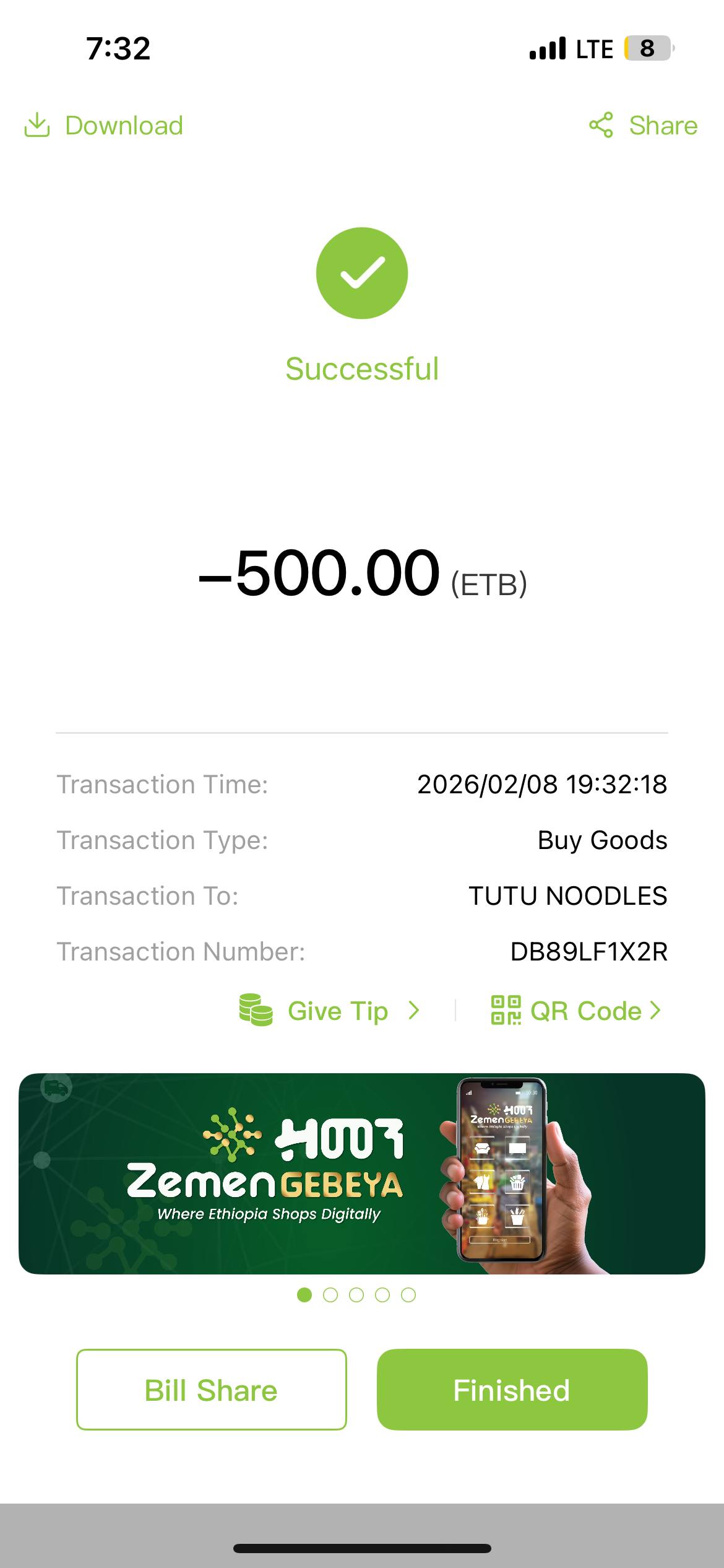 Total Spent: ETB 13,707